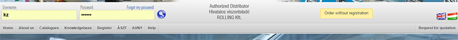 If you have registered successfully, and we received your username and password, you can enter the webshop, using 'Username' and 'Password' fields, then clicking on the 'Key' button (or pressing the ENTER key on your keyboard). If you wish to enter without registration, click on the button labeled 'Order without registration.'