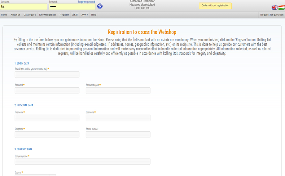 When you complete the form, click on the 'Register' button, which controls the completed data and feedback in case of error. If everything was successful, the Rolling Ltd. will contact you as soon as possible.